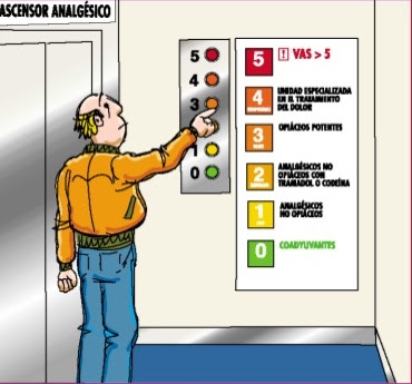 Un concepto consensuado y clarificador actual es el empleo ya no tanto de una escalera analgésica, sino más bien un ascensor analgésico en el que en función del curso evolutivo del dolor podamos pasar del resbaladizo escalón a la inmediatez y seguridad del ascensor.