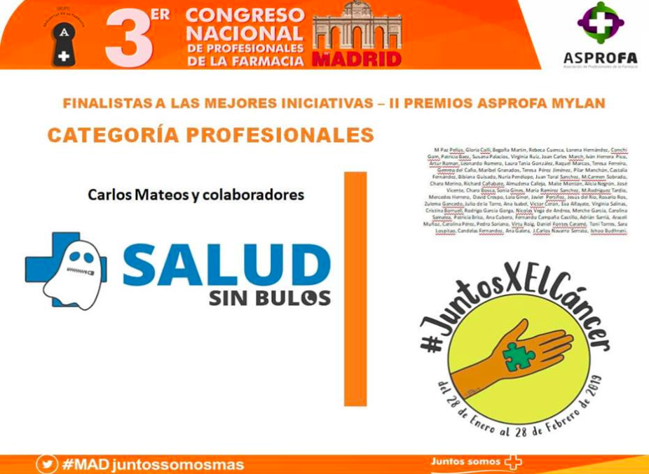 Detrás de la campaña #JuntosXElCancer ha habido un trabajo intenso de llamadas, correos, revisión sistemática y corrección de todos los artículos publicados para no perder calidad en el contenido, así como la difusión a través del altavoz que suponen las redes sociales. Un trabajo que ha dado que hablar en distintos foros y que ha dado lugar a publicación en forma de e-póster para el próximo Congreso SEOR y hemos sido nominados finalistas para los Premios ASPROFA.
